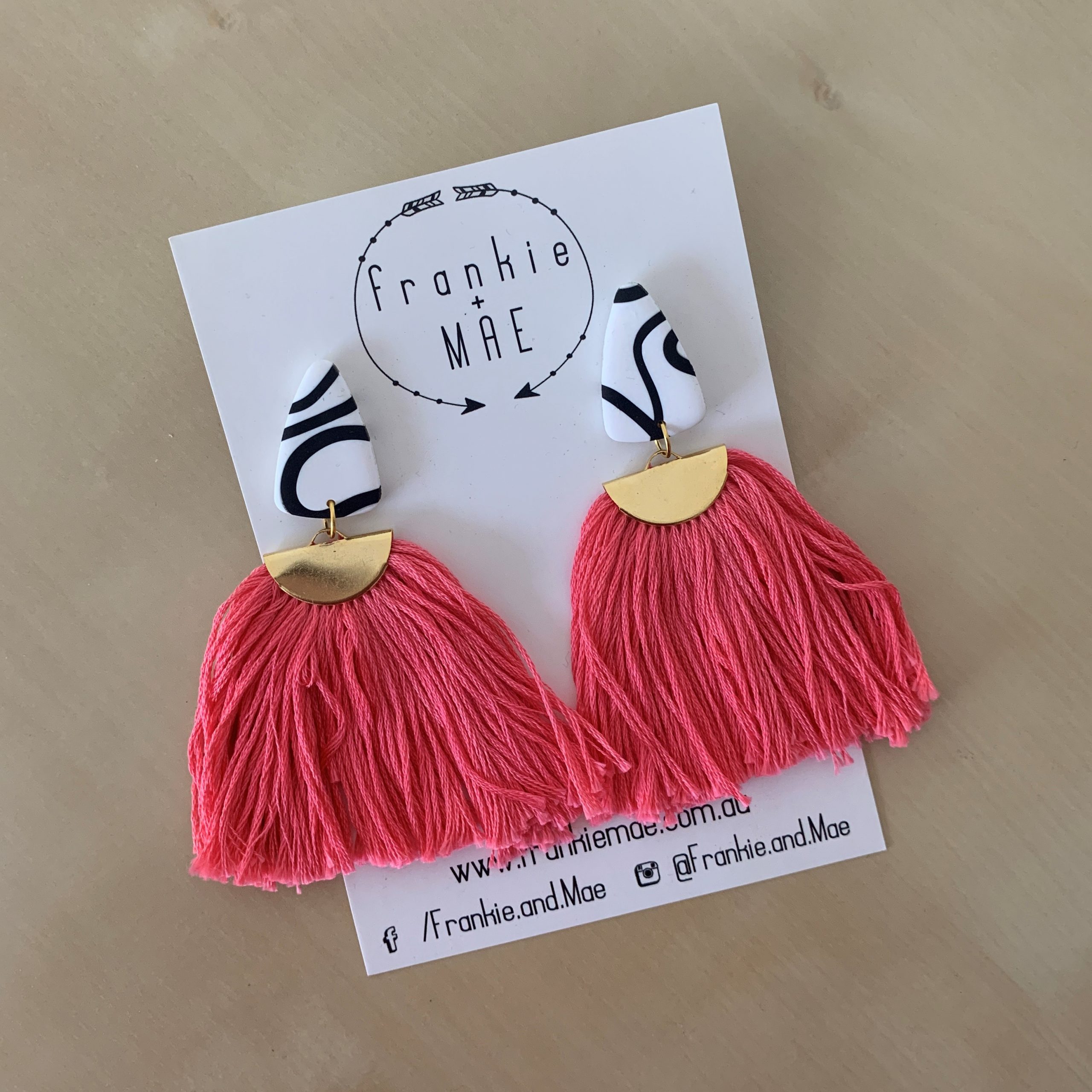 Bright and fun polymer clay earrings with handmade boho style tassels in South Australia.